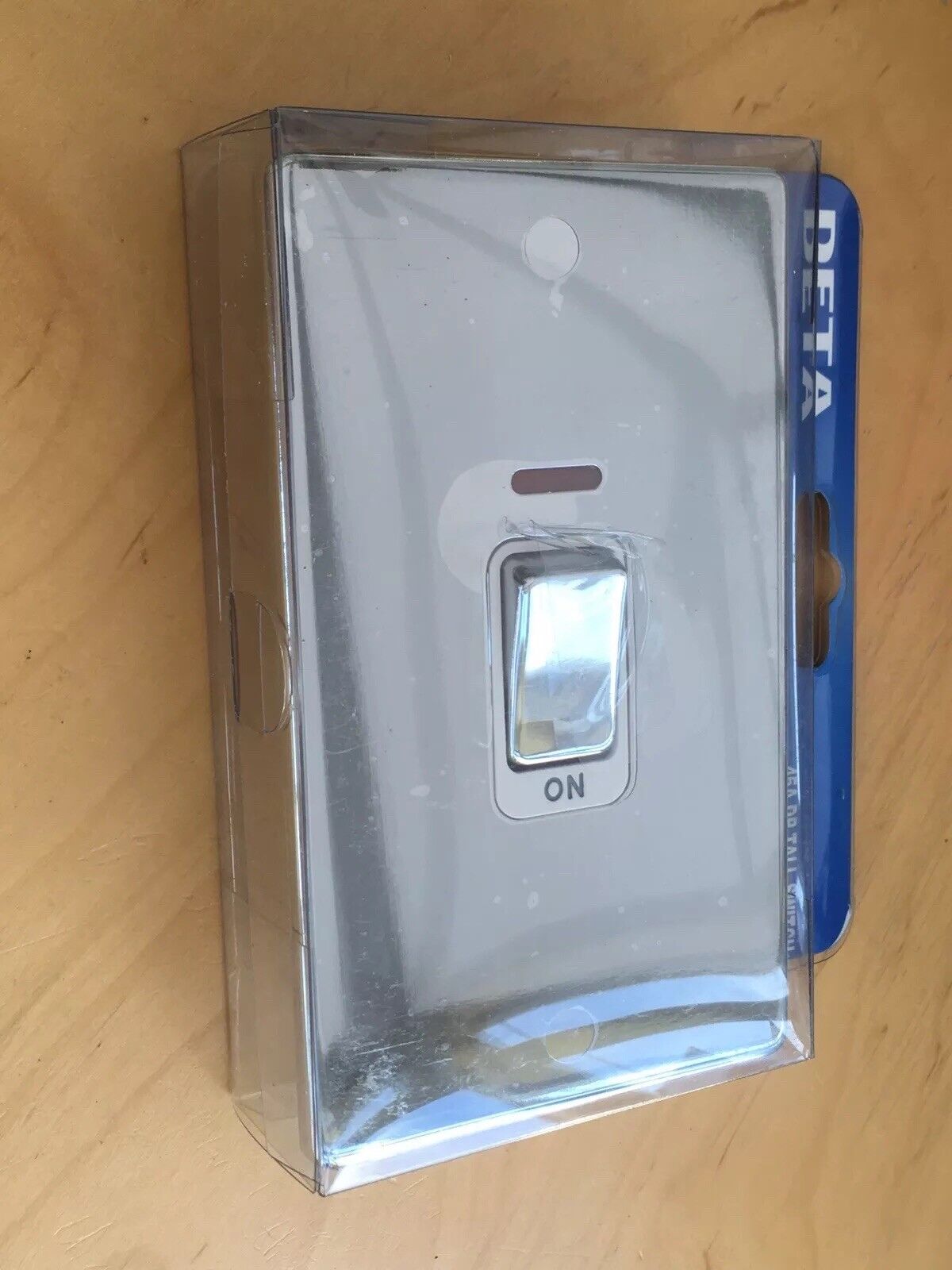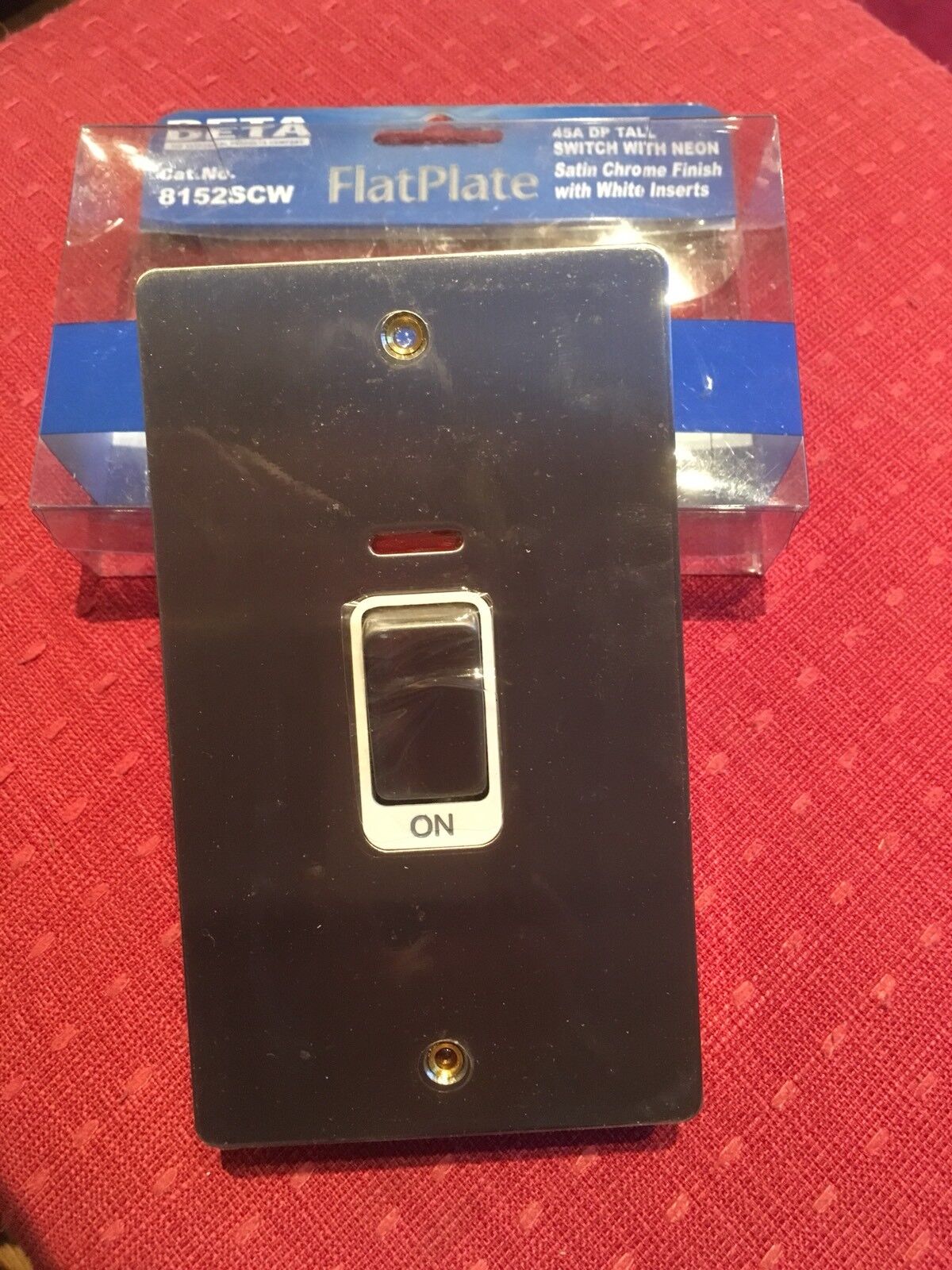 1 x Deta Decorative 1 gang 20amp DP switch with neon - Chrome with white insert.