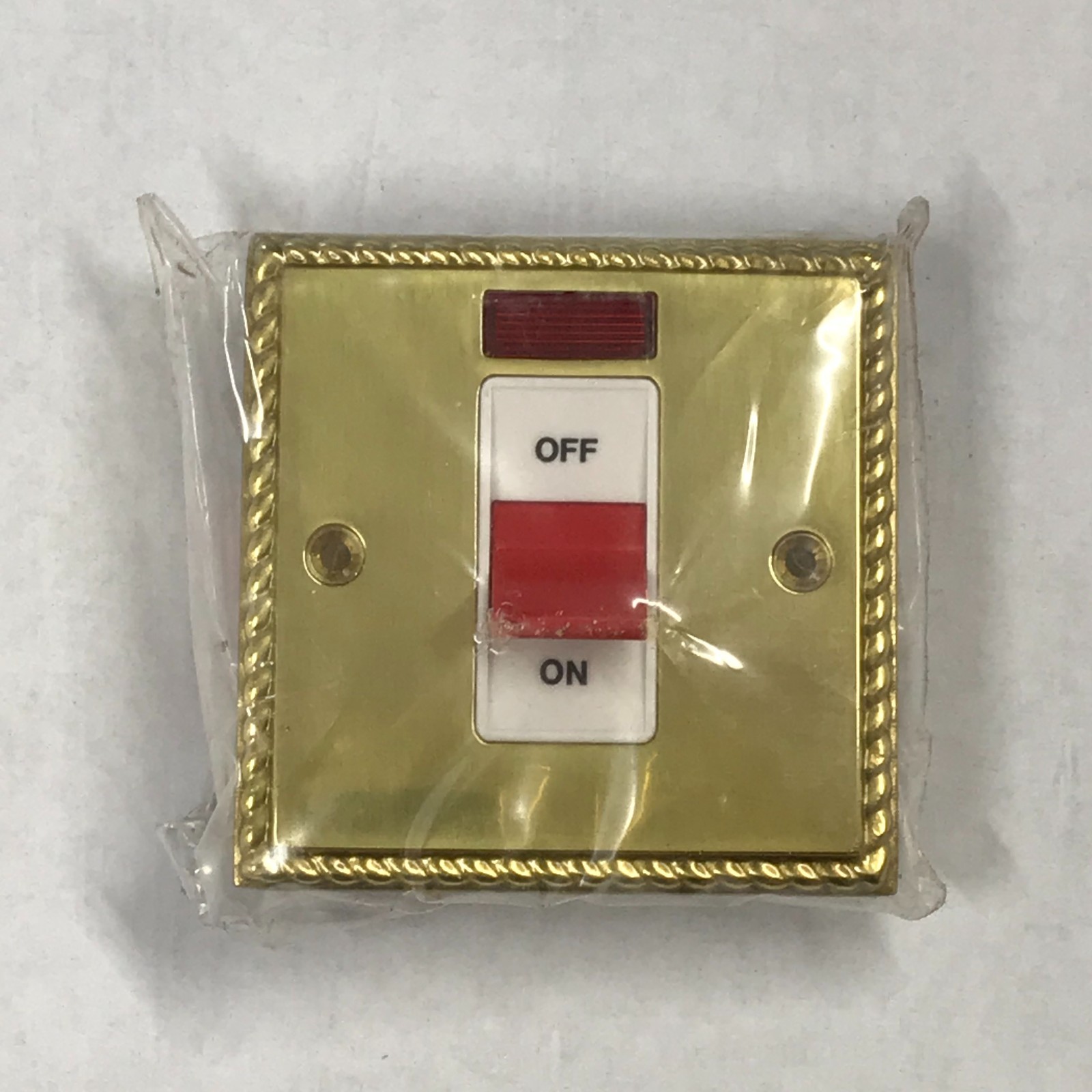 MK 4305POB DP Switch with Neon - 32 Amp (Georgian Brass / White Insert)