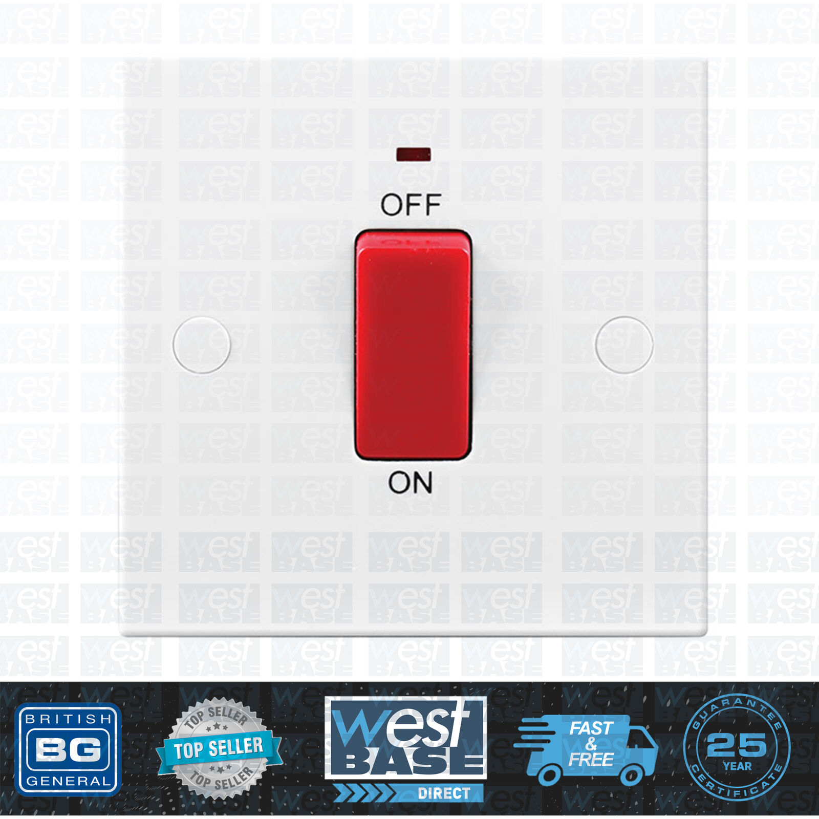 BG 974 WHITE SQUARE EDGE 45A Double Pole Single Plate Switch Neon Home Office