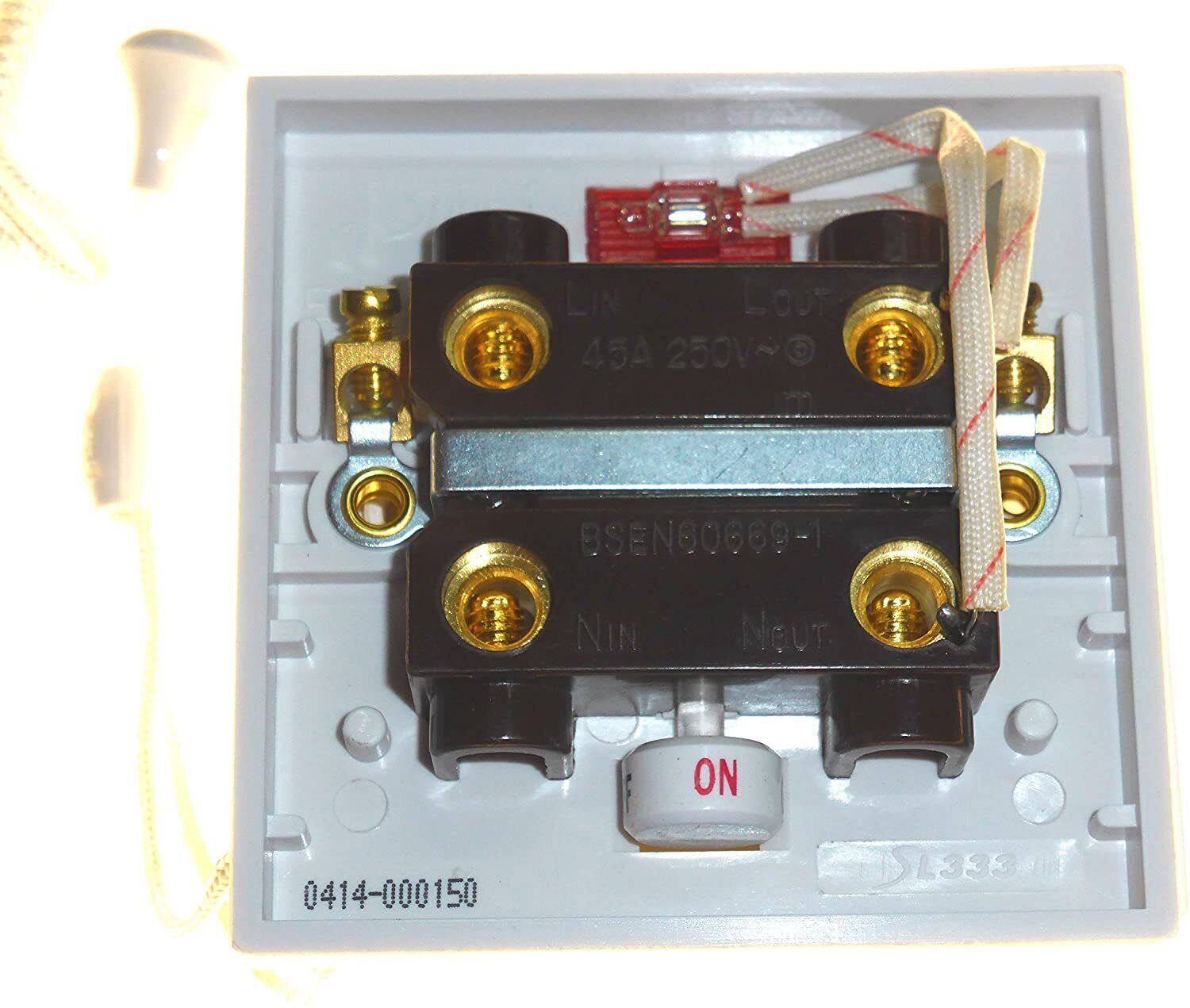 45 Amp Shower Pull Cord Ceiling Switch with Neon Back Box 45A White