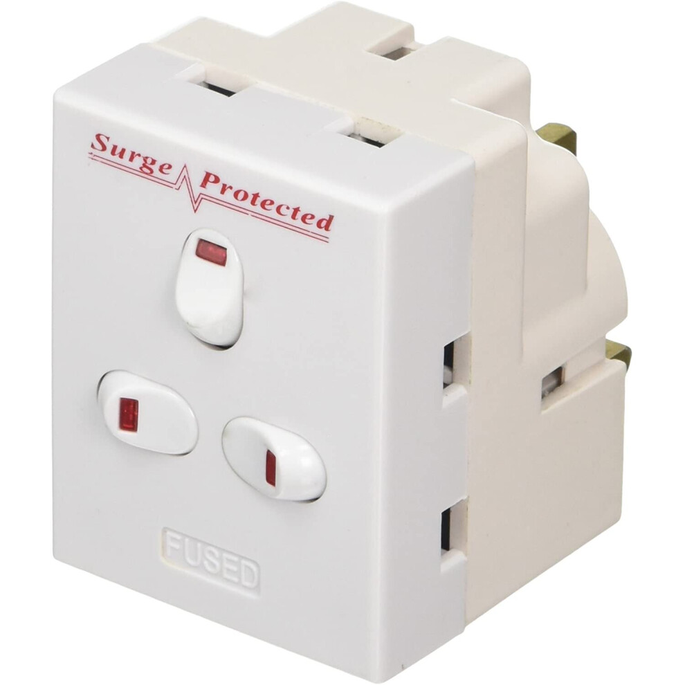 13A 3 Way 3 Gang Switched Surge Protected Plug-In Adapter with Neon Switch–White