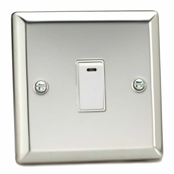 Varilight XC20NW Double Pole Switch with Neon 20 A Mirror Chrome White Insert