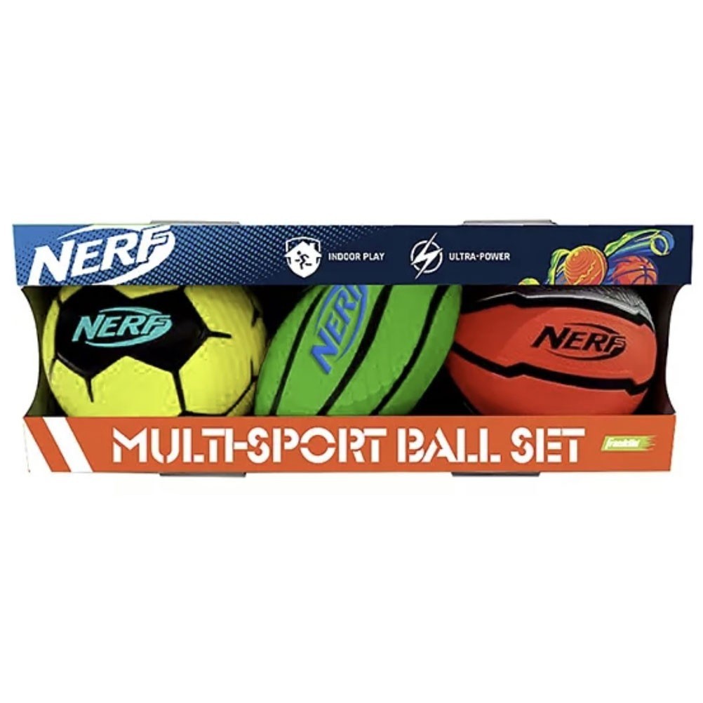 Nerf Mini Foam Sports Ball Set 3pk- Football, Soccer Ball and Basketball- 92081