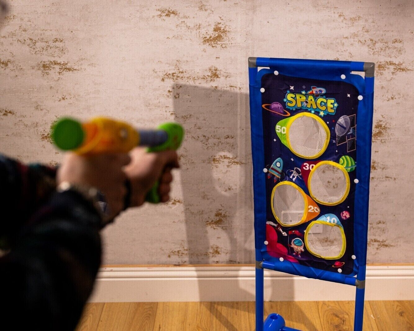 Explore our collection of Nerf guns and target sets. Find the perfect blasters for your next intense battle. The NERF Elite Portable Practice Target is a must-have for any Nerf enthusiast. Suitable for ages 10 and up, this target set features a military-themed design and comes with a foam and plastic target. Get ready for some action-packed fun with our range of Nerf products.