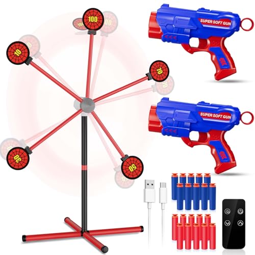 M&LD Rotating Shooting Games Toys with 42 Inch Auto-reset Target 20 Foam Darts 2 Toy Guns for Nerf Target Game for Boys Age 4 5 6 7 8 9 10+ Years Old Christmas Birthday Gifts