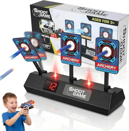 Electronic Digital Target for Nerf, Boys Toys Age 3 4 5 6 7 8 9 Shooting Game Auto Reset Targets with Foam Bullets Kids Birthday Gifts Stocking Fillers for 3-10 Year Old Teen Boys