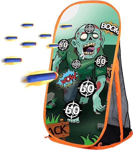 RONSTONE Shooting Games Target Compatible with Nerf Gun for Boys Girls 6+ Years,Toy Foam Blaster Shooting Targets for Kids Indoor Outdoor, Zombie Shooting Target with Storage Net