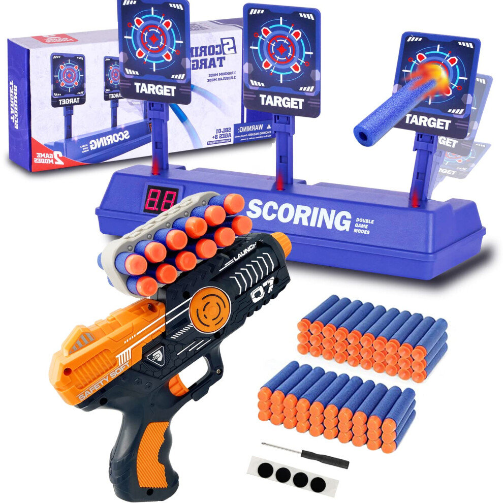 Electronic Digital Target with Gun Toy for Nerf, Pistol Toy with Foam Bullets fo