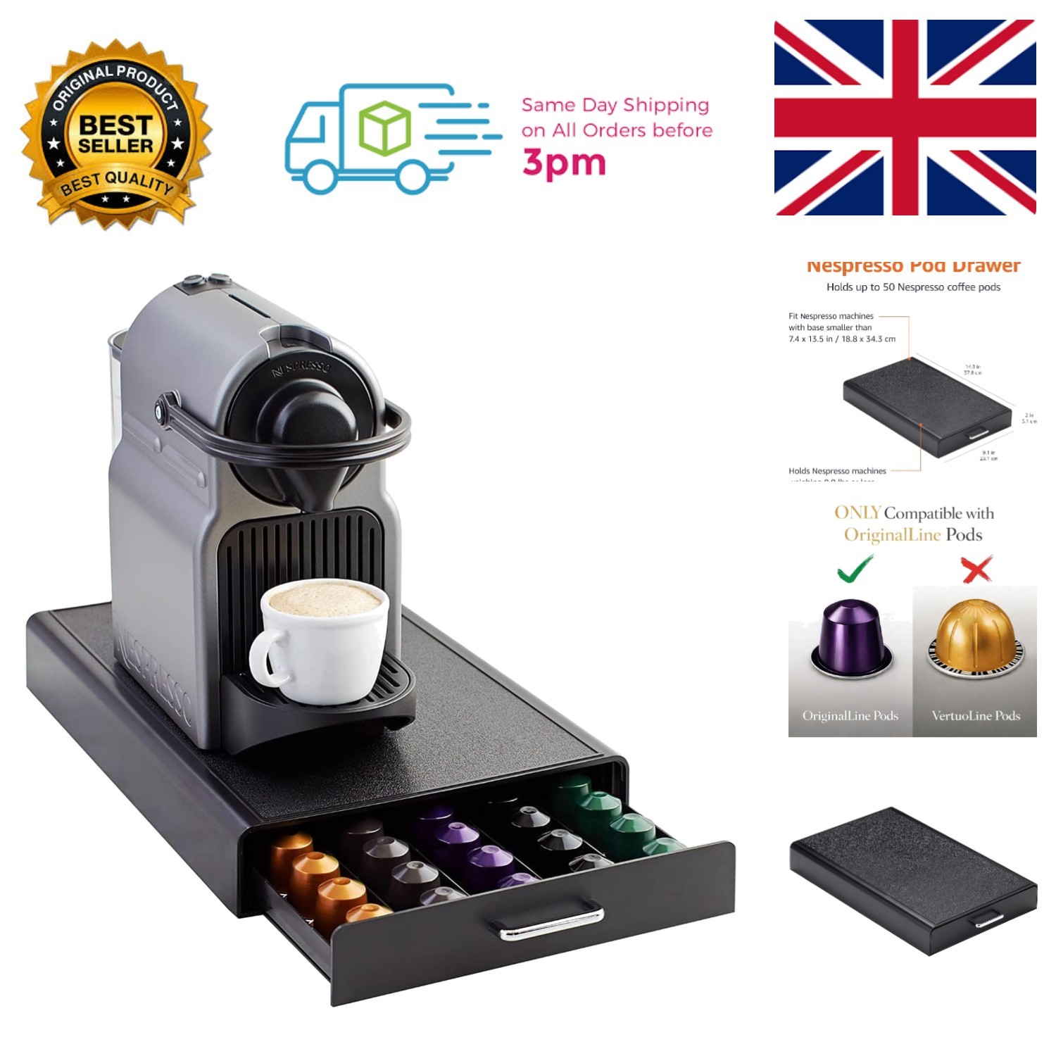 Nespresso Coffee Pod Holder Drawer Storage Tray | Machine Stand Glass Capsules