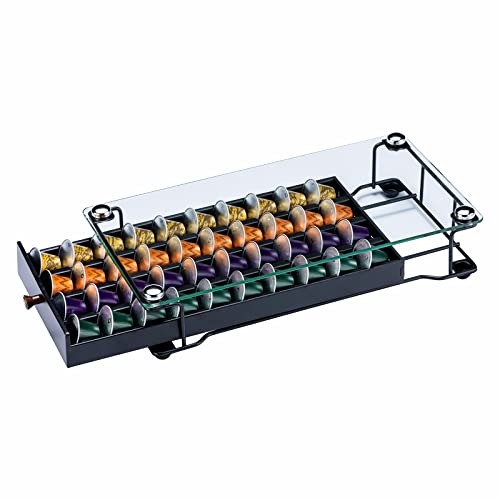 Flagship for Nespresso Pod Holder Drawer Coffee Pod Organizer Storage for Nespresso Capsules Holder Glass Storage Tray (40 Vertuo Pods Capacity)