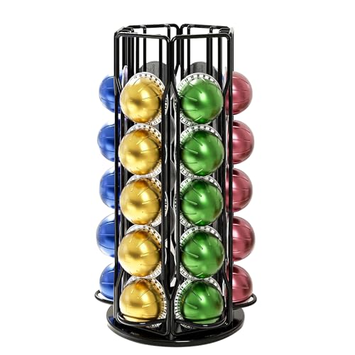 Xfanscafe Coffee Pod Stand Holder for 20 Vertuo Pods Nespresso Vertuoline,360° Rotating Coffee Capsule Rack Holds Vertuo Pods, Black