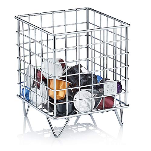Barista & Co Coffee Pod Cage - Stainless Steel Large Capacity 80+ Coffee Capsule Holder - Electric Steel with Stamp Logo Coffee Pod Storage Compatible with Nespresso, Tassimo, Dolce Gusto Pods etc.