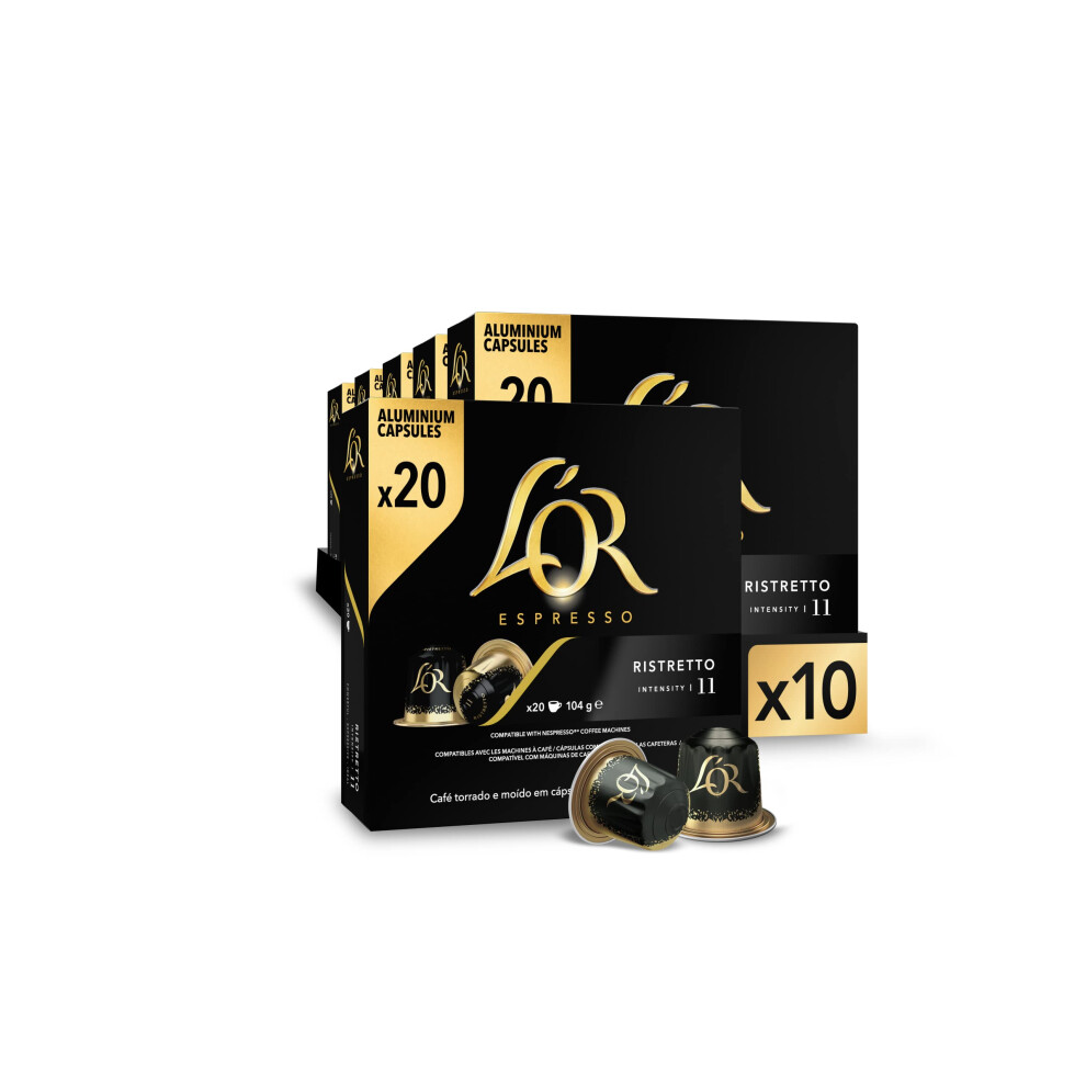L'Or Espresso ristretto Intensity 11-20 Aluminum Capsules Nespresso Machines Compatible 104g (10 packs of 20),package may vary