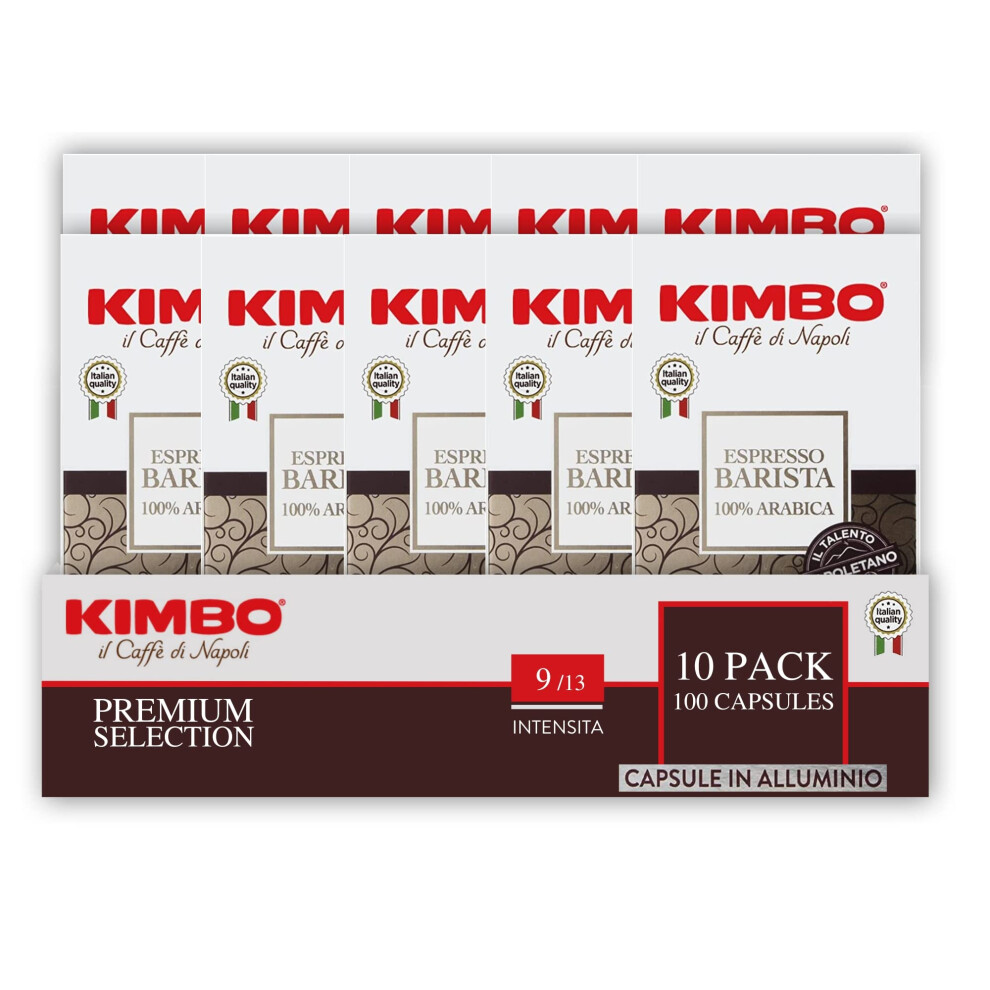 Kimbo Coffee Espresso Barista Capsules (10 x 10) | Nespresso Coffee Machine Compatible | 100 Aluminium Capsules, Medium Dark Roast | Italian 100% Arabica Coffee Pods, Barista Series
