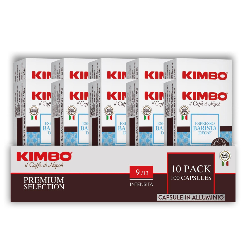Kimbo Coffee Espresso Barista Decaf Capsules (10 x 10) | Nespresso Machine Compatible | Decaffeinated Aluminium Coffee Pods | Italian Medium Dark Roast Espresso Coffee