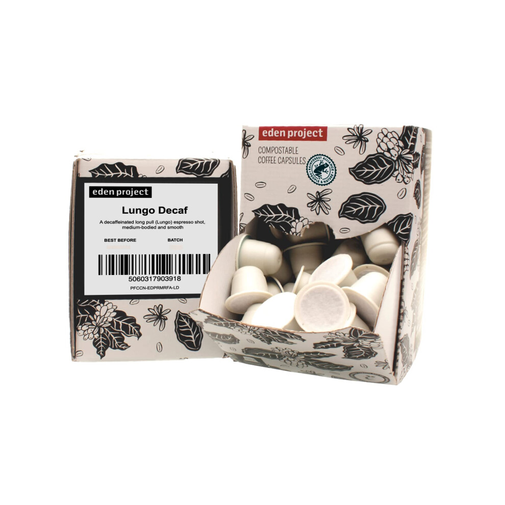 THE EDEN PROJECT Home Compostable Coffee Pods - Compatible with Nespresso Original system coffee machines - EXTRA VALUE 100 POD PACK (Lungo Decaf)