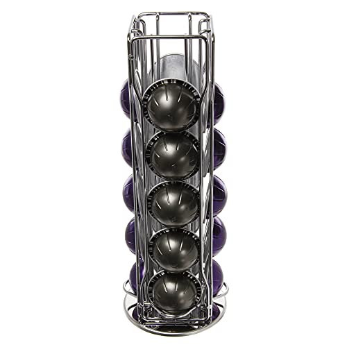 ZCDCP Nespresso Pod Holder for Vertuo Pod Holder Carousel Stand Storage with 360 Degree, Chrome Coffee Pod Holder Organizer for Nespresso Vertuo, 20 Pods