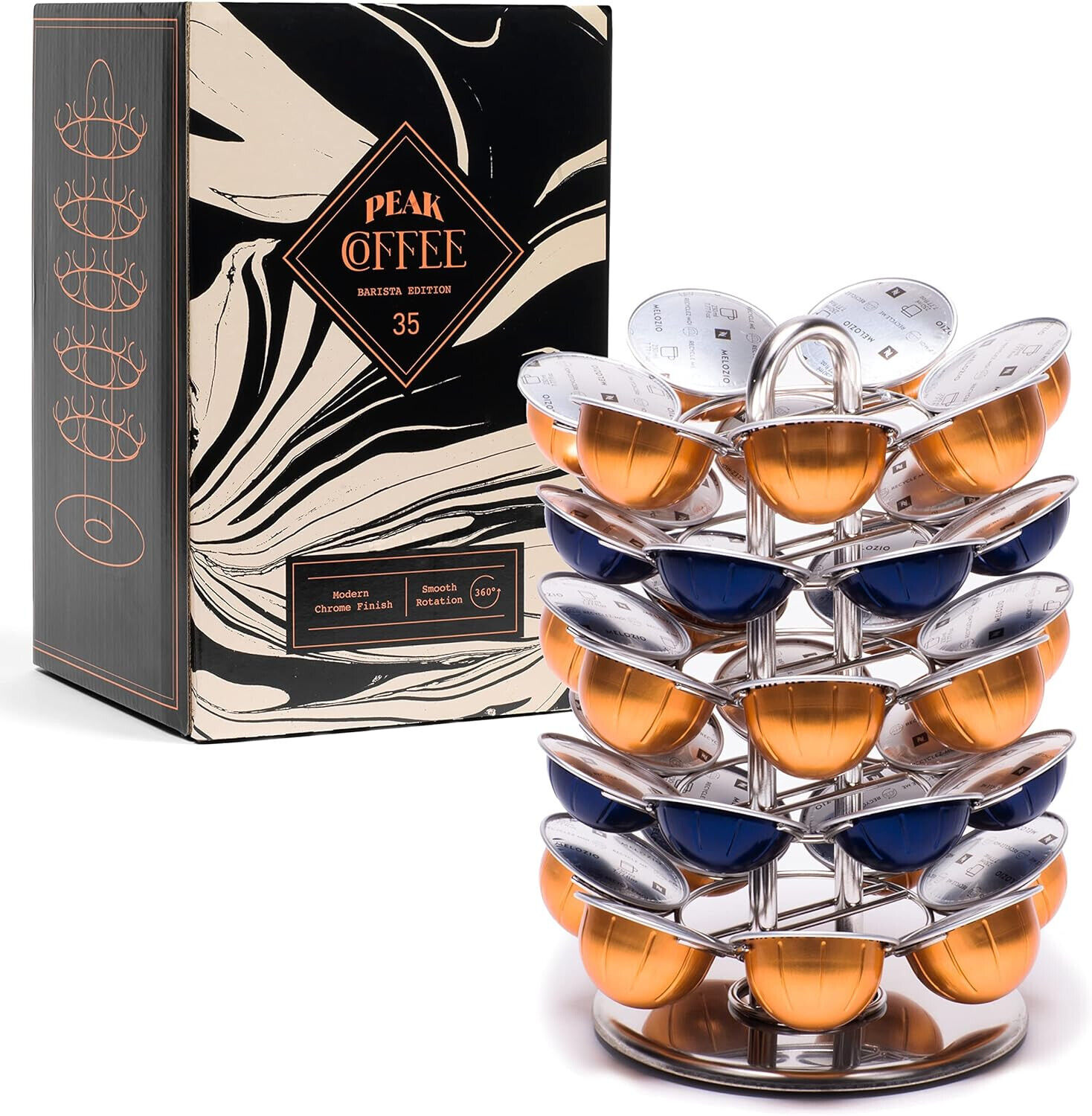 Peak Coffee 35 Pod Revolving Capsule Holder Stand Nespresso Vertuo Vertuoline