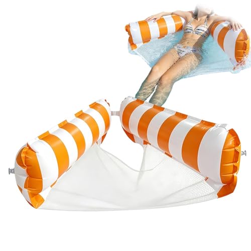 Pool Float Chair- 2-in-1 Striped Portable Hammock,Inflatable Pool Floats- Inflatable Pools Float Mats | Po-ol Hammock With Bottom Mesh | For Water Lake Sea Beach Pond River Indoor Outdoor Outside Cam