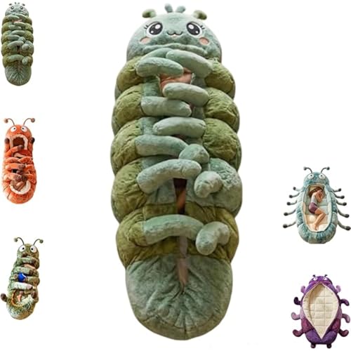 Hugging Caterpillar Sleeping Bags, Plush Cocoon Sleeping Bag with Pull Cord, Giant Fluffy Full Body Lounger for Adults, Cozy Indoor Nap Pod, Reading Nest, Washable Animal Sleep Sack (#2)