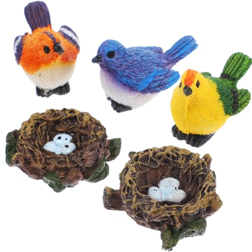 SUPVOX Miniature Artificial Bird Nest Set with 3 Small Colored Birds and 2 Nests Micro Scene Dollhouse Decor for Garden and Doll Accessories Tiny Realistic Figurines for Indoor Display