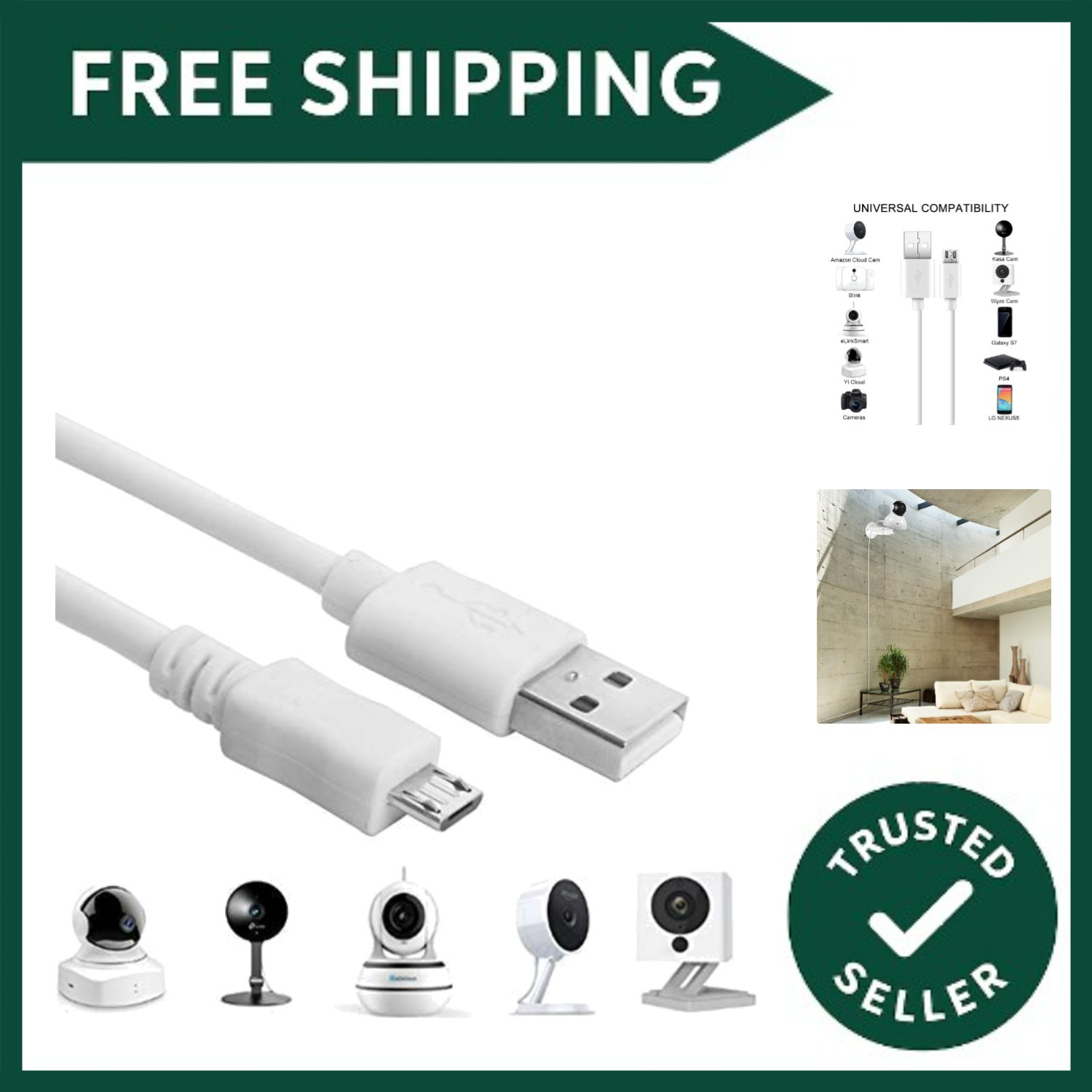 USB CABLE LEAD CHARGER FOR NEST CAM SECURITY CAMERA