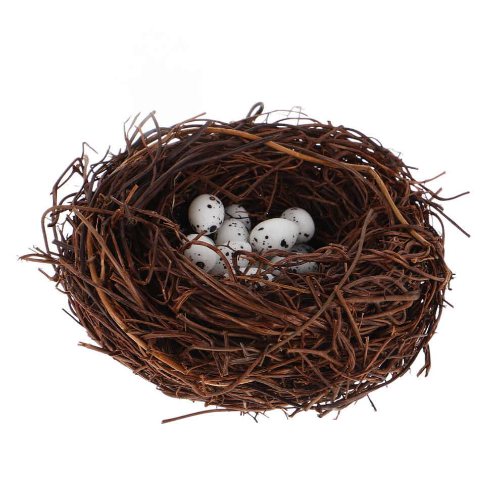 3Pcs Mini Bird Nest With Eggs Artificial Rattan For Garden Home Decor