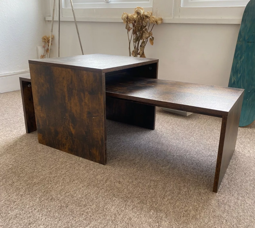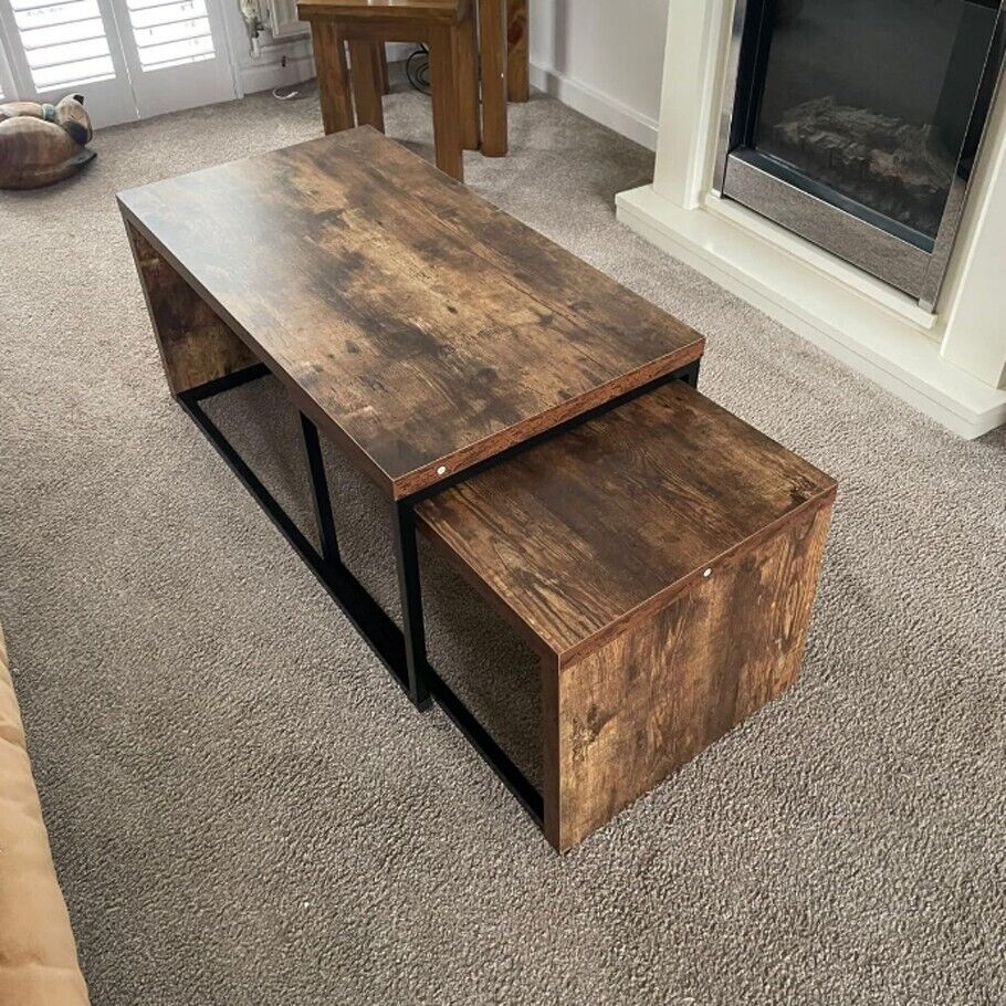 Industrial Nest of Tables Vintage Retro Coffee Table Set 2 Rustic Side Furniture