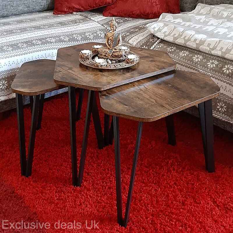 Industrial Nest Of Tables Rustic Coffee Table Set Of 3 Steel Legs Living Room
