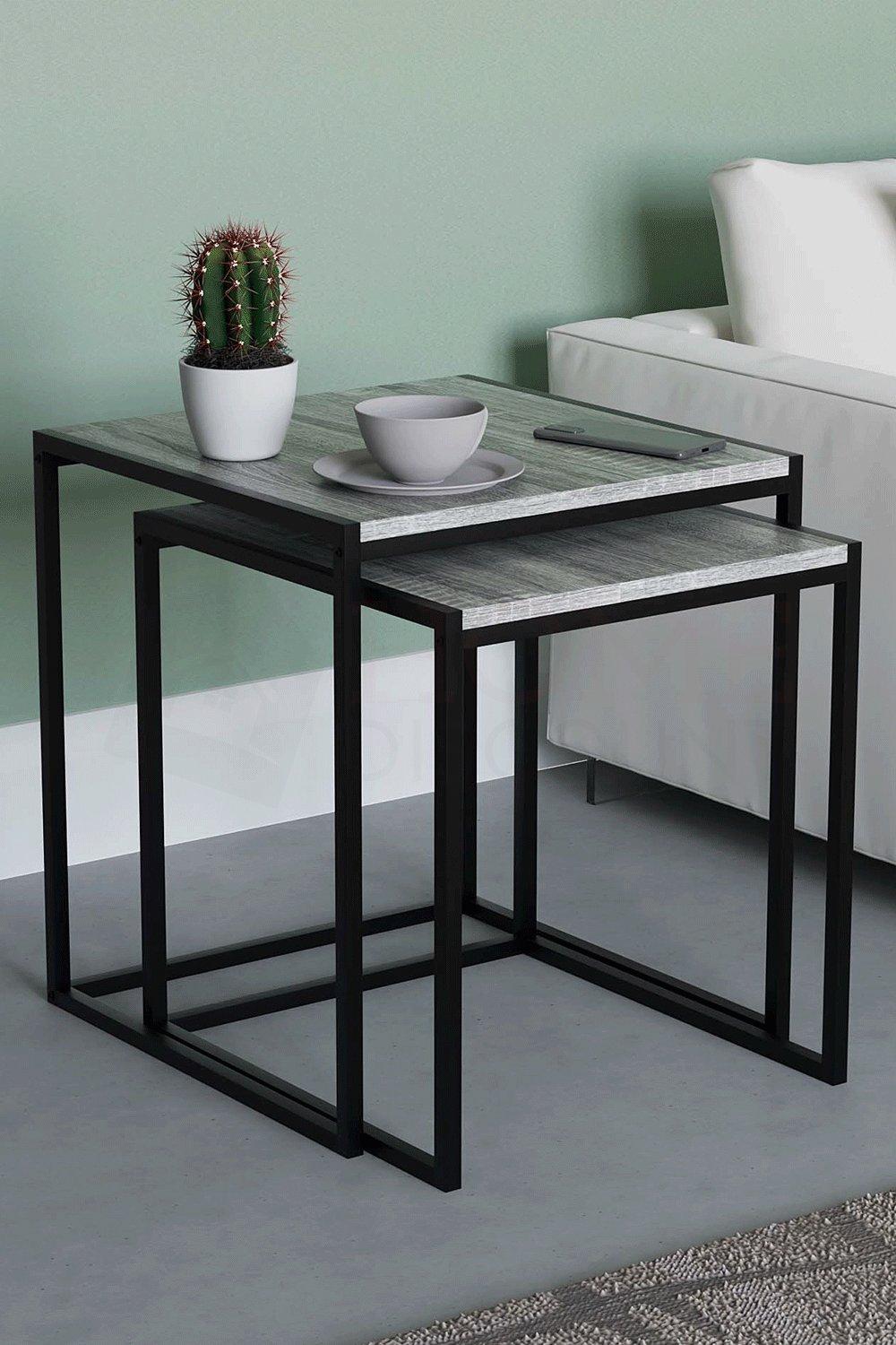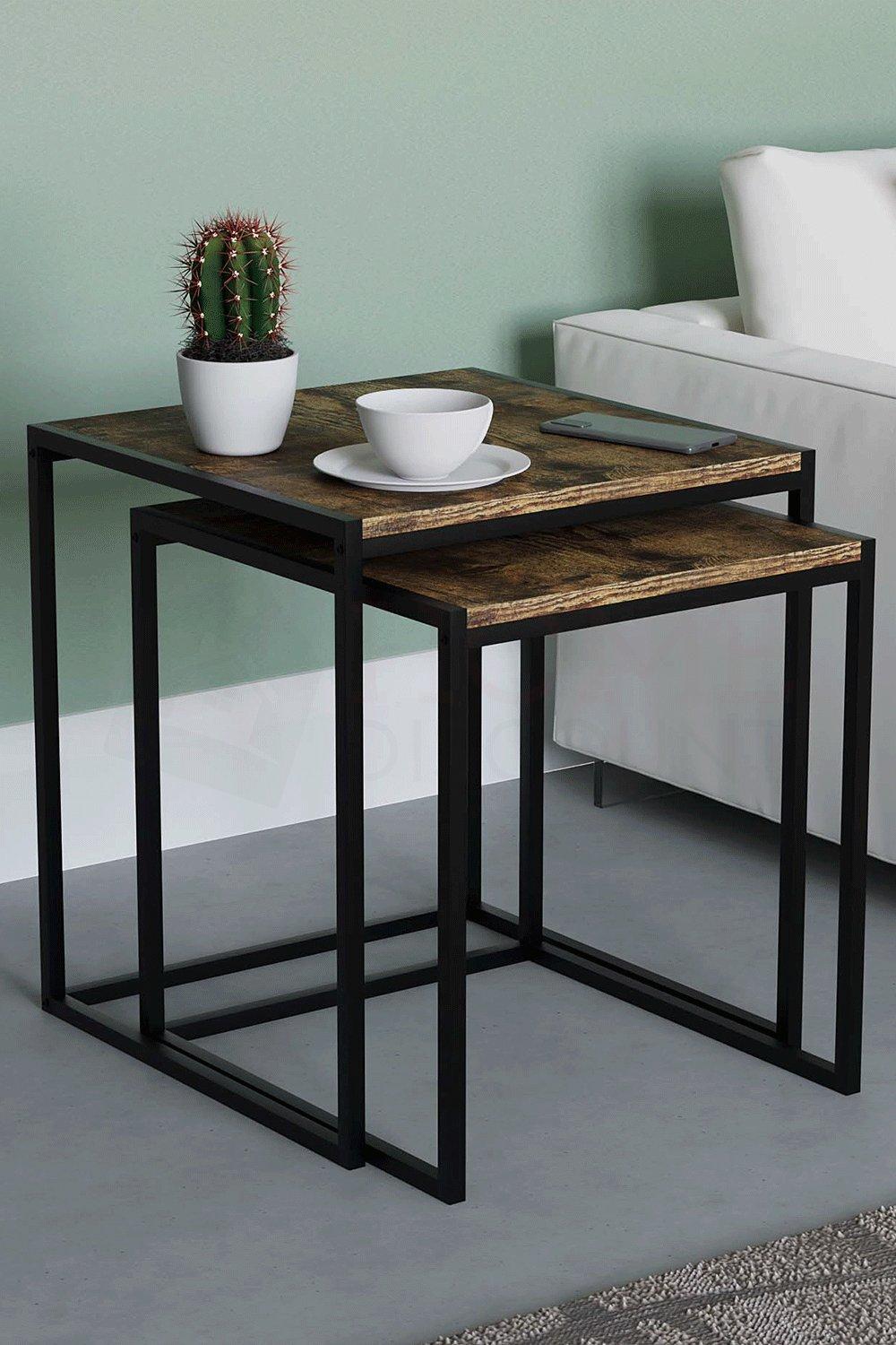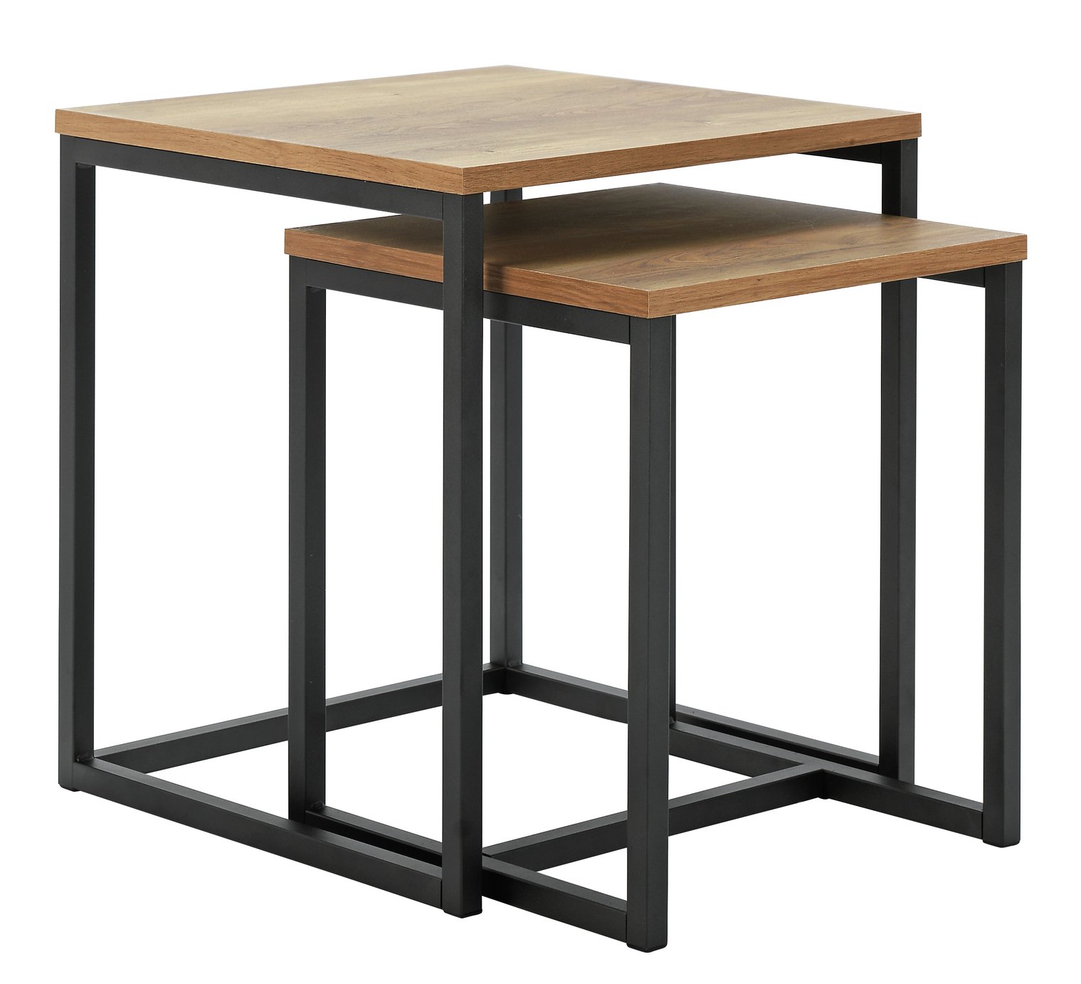 New Wooden Top And Metal Frame Tromso Contemporary Nest Of Two Tables Square