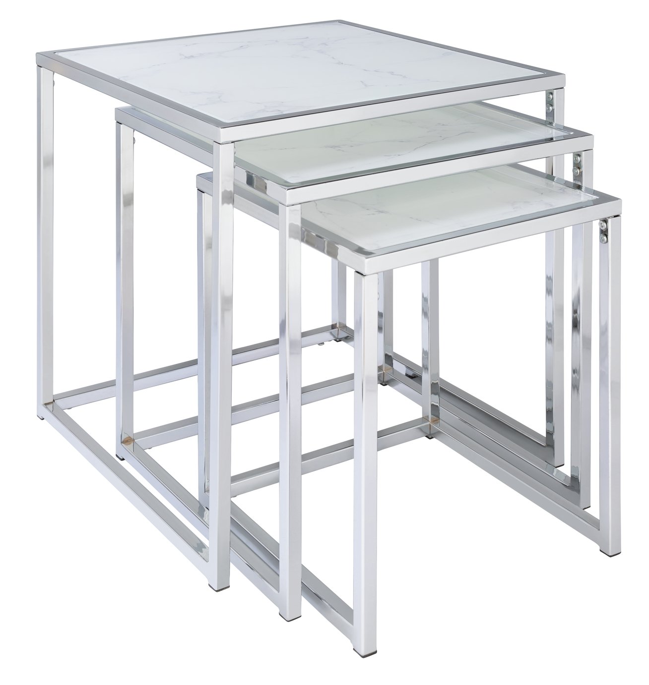 Tempered Glass Nest of 3 Tables Set with Chrome Frame