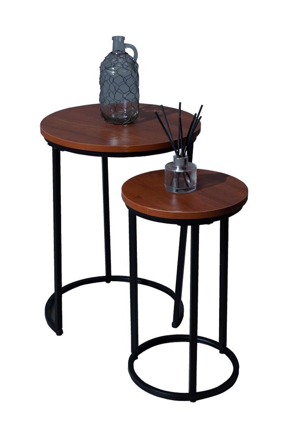 Industrial Nest Of Tables Modern Coffee Side Table Set Of 2 Metal Frame Round