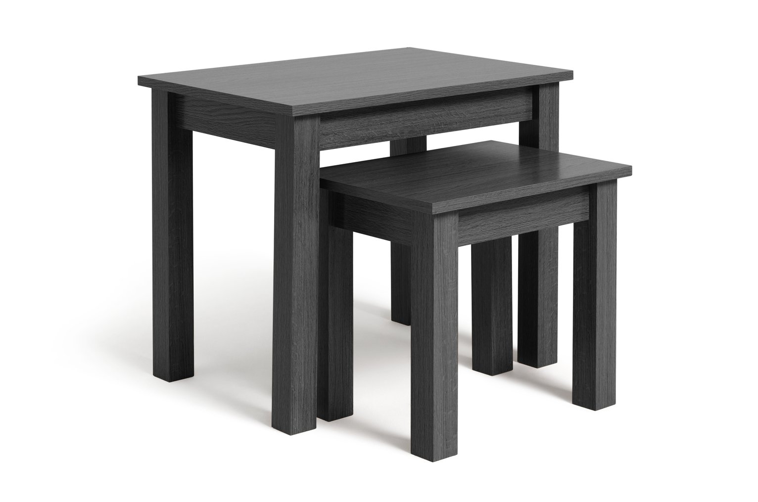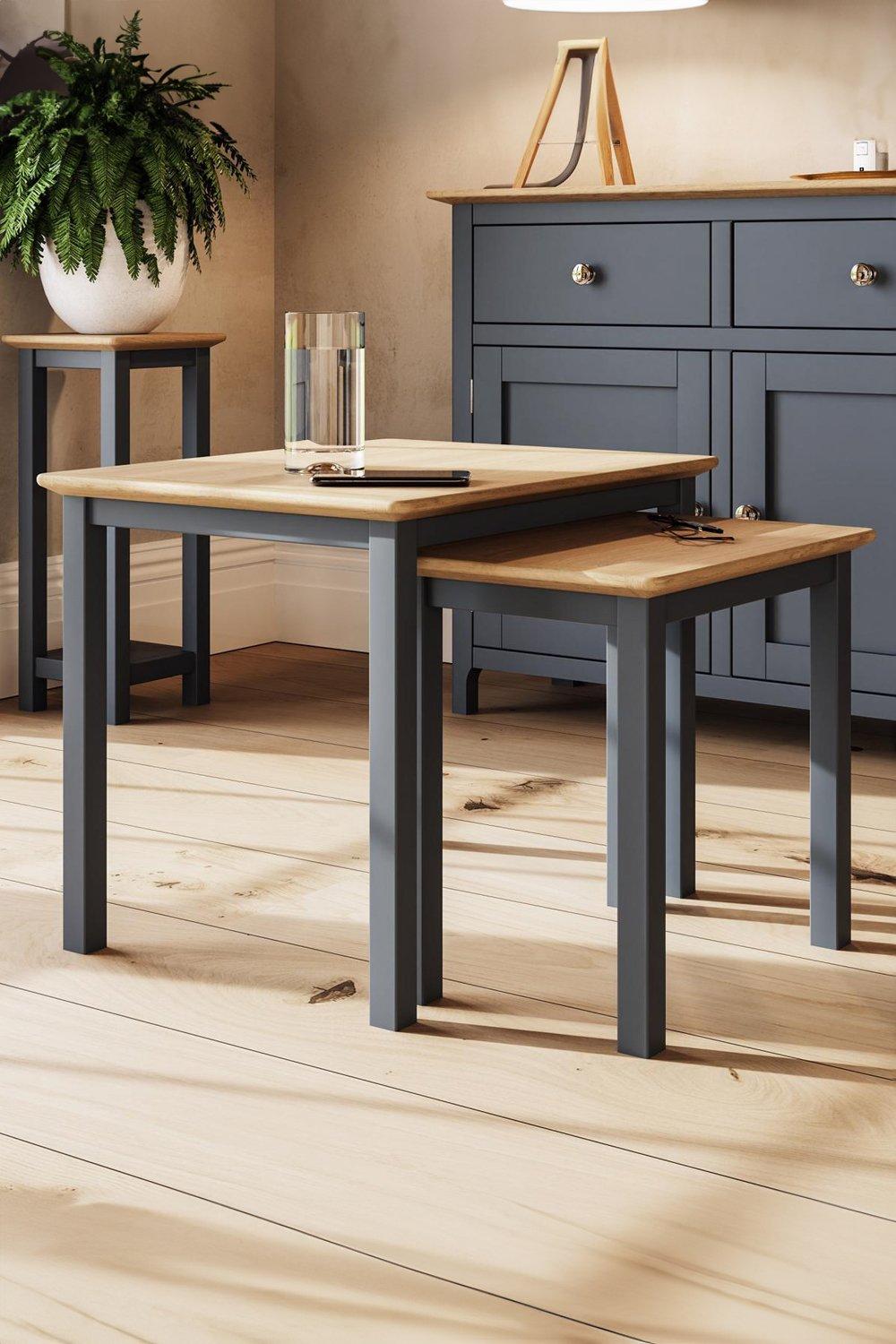 Solid Oak Nest Of 2 Tables Graphite Blue Ready Assembled