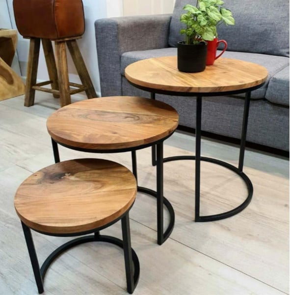 Industrial Nest of Tables Rustic Solid Wood 3 set Nesting Coffee Side End Table