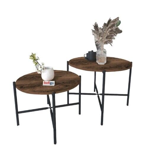 URBNLIVING 2-Piece Round Wooden Nesting End Table Set with Metal Legs Ideal for Coffee and Side Tables, Modern Living Room Furniture, Space-Saving Design (Burnt Oak)