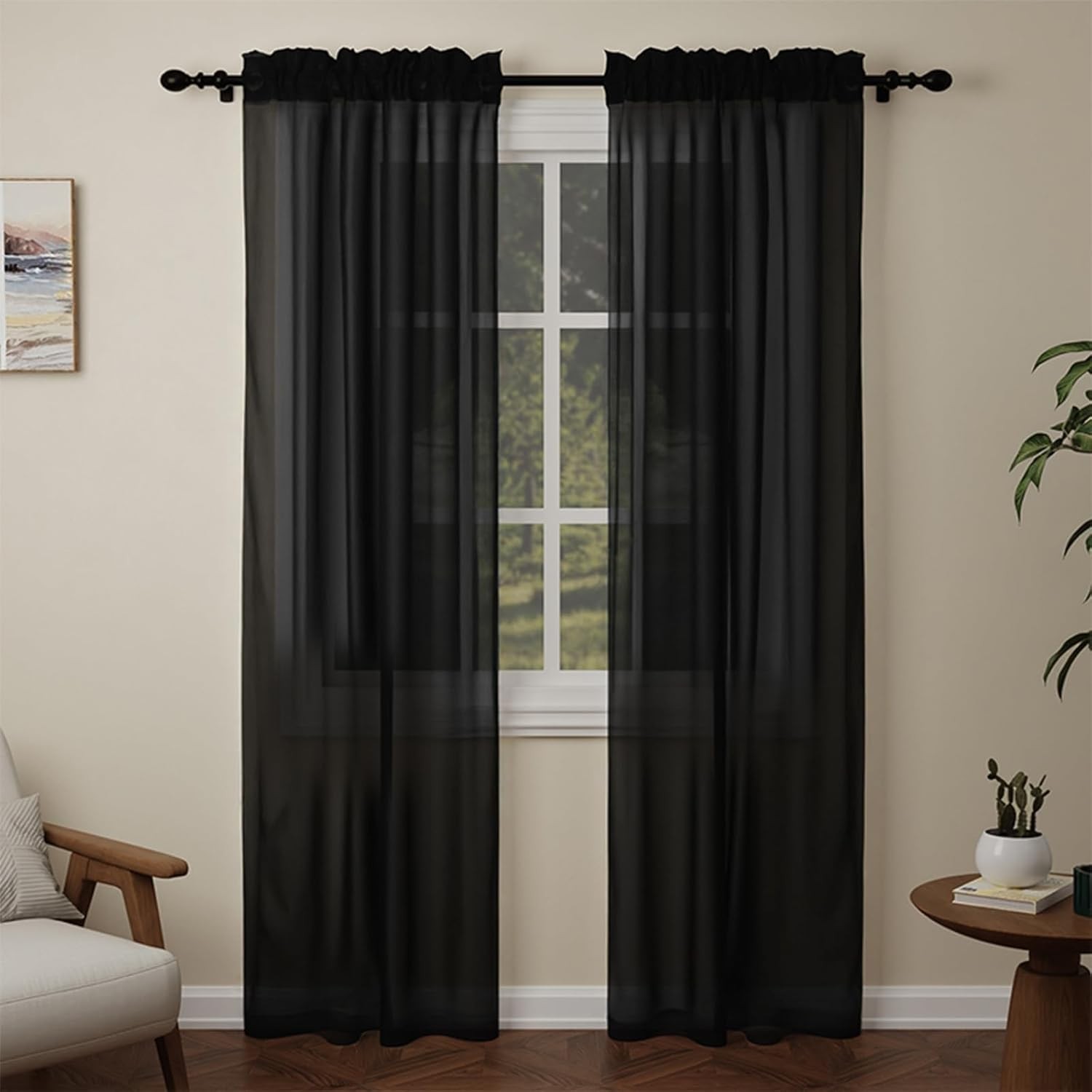 Black Voile Curtains, 84 Drop 2 Panels Net Curtain for Windows, Rod Pocket Shee