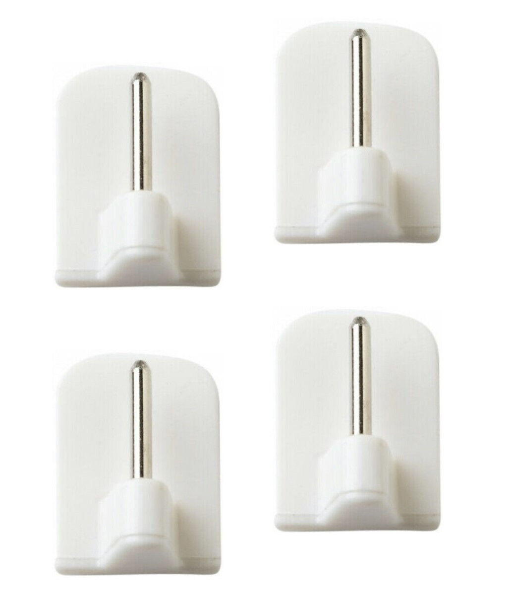 4 STICKY ADHESIVE WHITE STICK-ON NET CURTAIN WIRE ROD END HOOK FOR UPVC WINDOWS