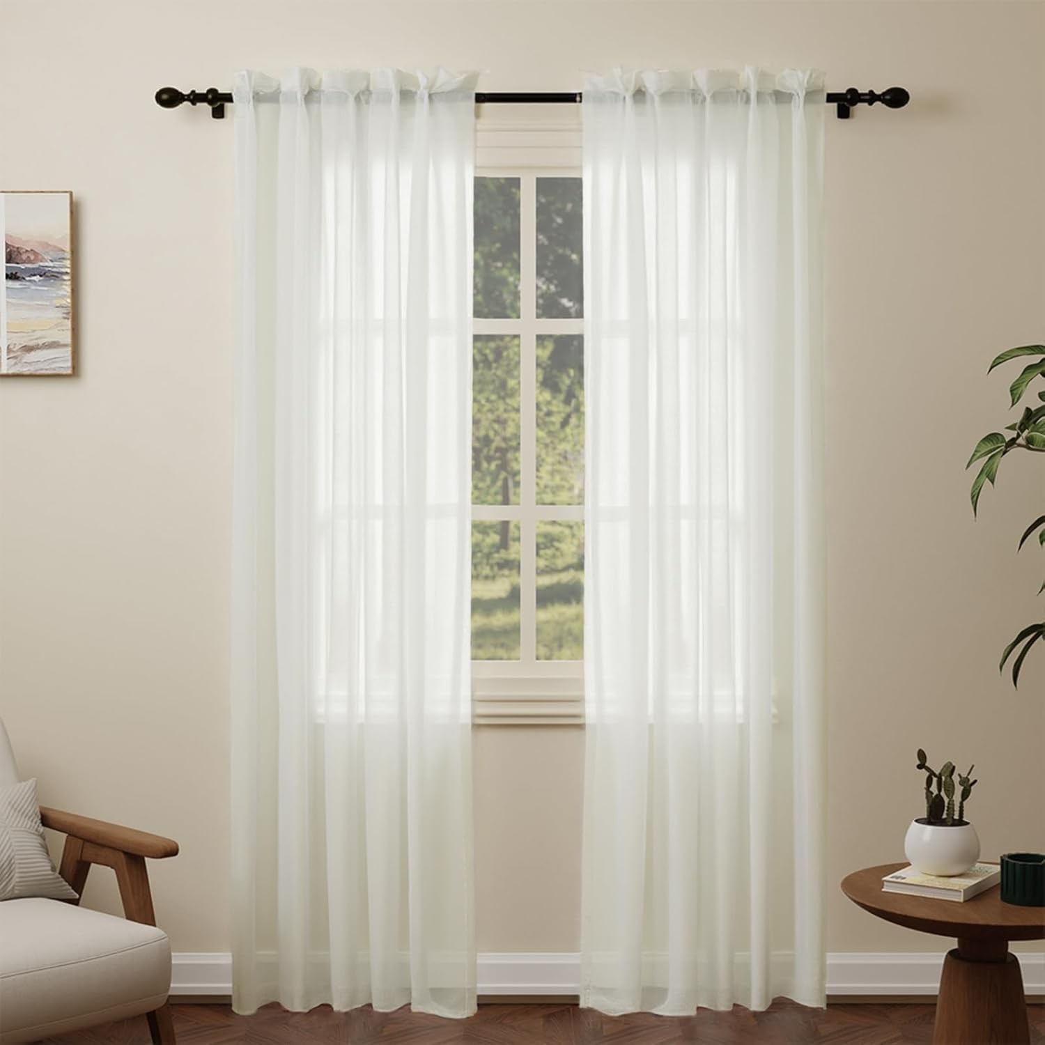 White Voile Curtains, 84 Drop 2 Panels Net Curtain for Windows, Rod Pocket Shee