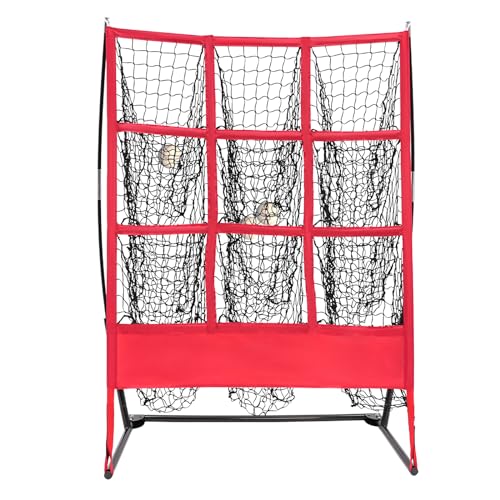 MEHOOSPVN Baseball Practice Net, Golf Net, Pitching Target, 9 Hole Softball Baseball Pitching Hitting Target Net, Golf Swing Trainer Portable Baseball Pitching Training Equipment for Any Pitcher, Red