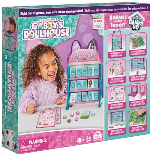 Gabby’s Dollhouse, Games HQ Checkers Tic Tac Toe Memory Match Go Fish Bingo Cards Board Games Toy Gift Netflix Party Supplies, for Kids Ages 4 and up