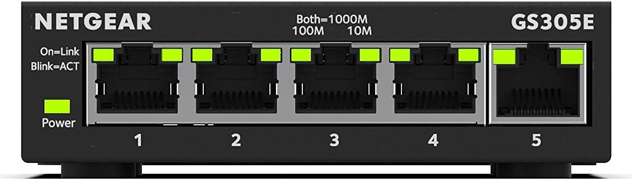NETGEAR 5 Port Gigabit Ethernet Managed Network Switch (GS305E) - Desktop or Wall Mount, Home Network Hub, Office Ethernet Splitter, Silent Operation