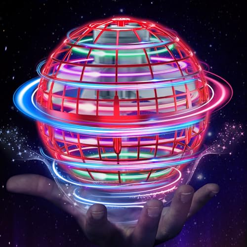XINHOME Flying Ball Orb Toys Hover Ball Pro Flying Spinner Toy UFO RGB Cool Stuff Globe Orbi Magic Boomerang Hand Controller Mini Drone for 8 9 10 11 12 boys girls Kids (Red)