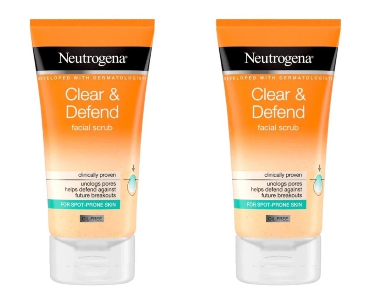2 X Neutrogena Clear and Defend Facial Scrub 150 ml.
