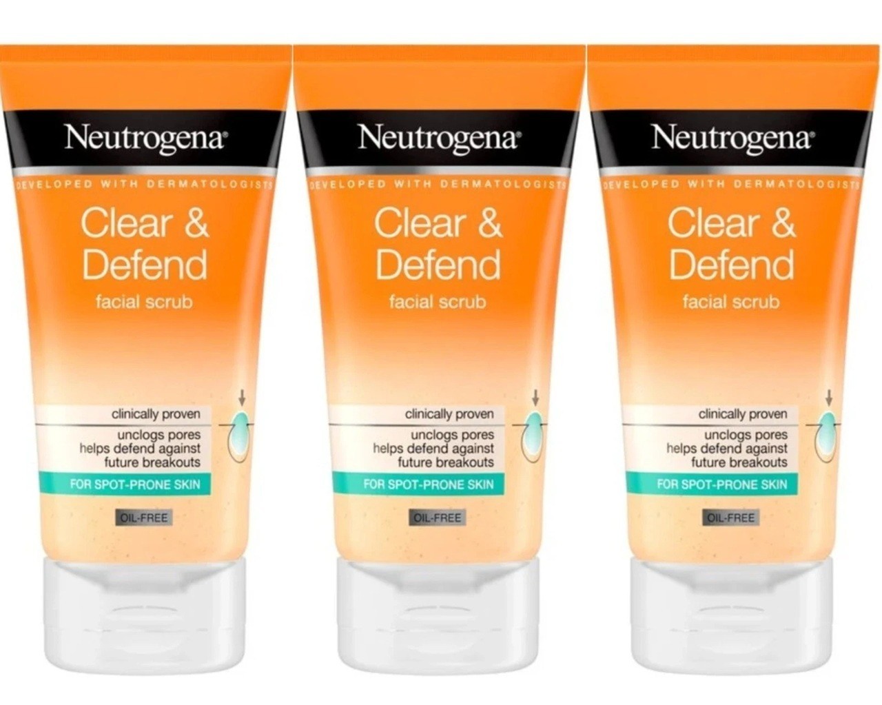 3 X Neutrogena Clear and Defend Facial Scrub 150 ml.