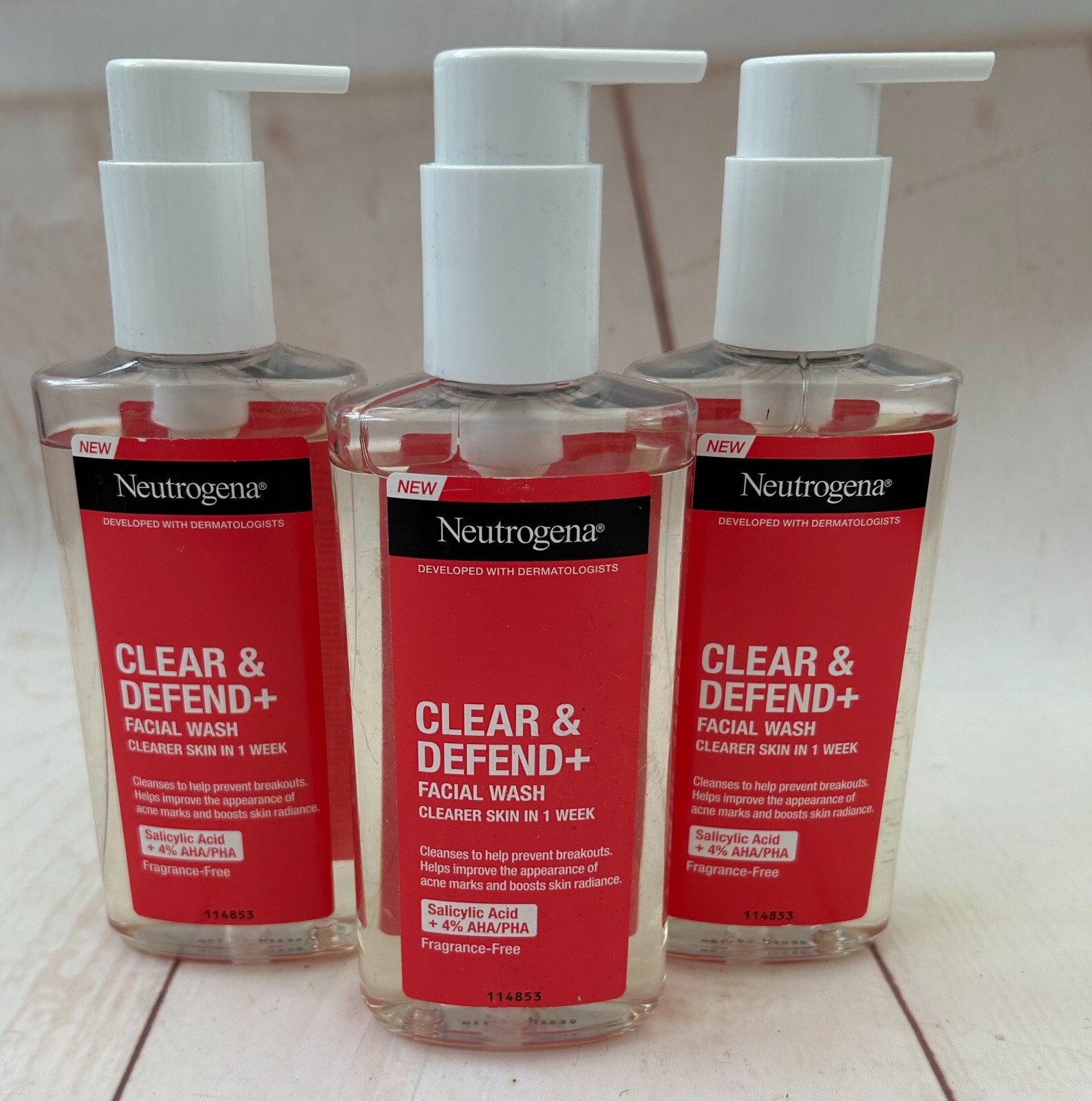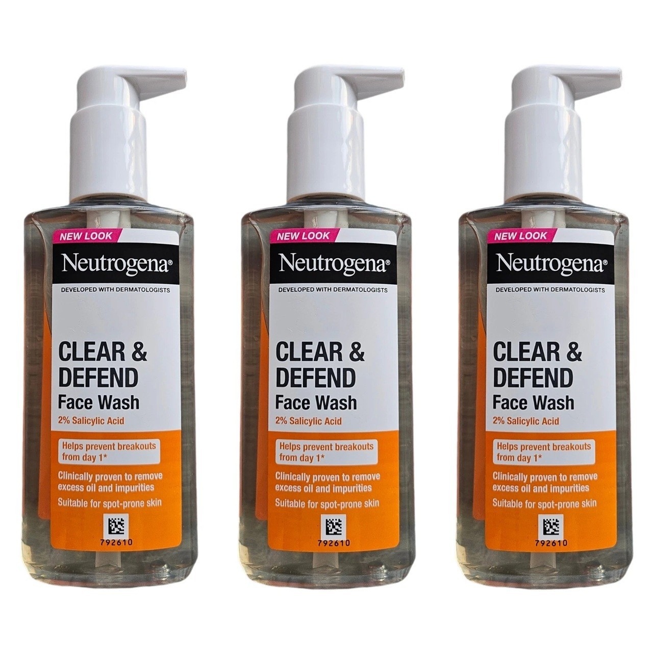 3x Neutrogena Clear and Defend Facial Wash With 2% Salicylic Acid Oil Free 200ml