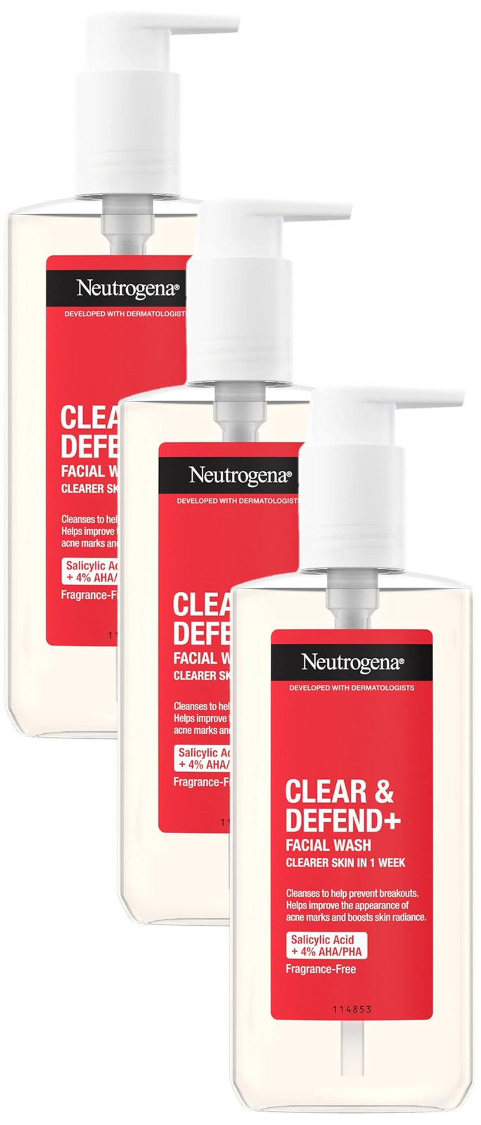 Neutrogena Clear and Defend+ Facial Wash, 3x 200ml Clearer Skin in 1 Week,