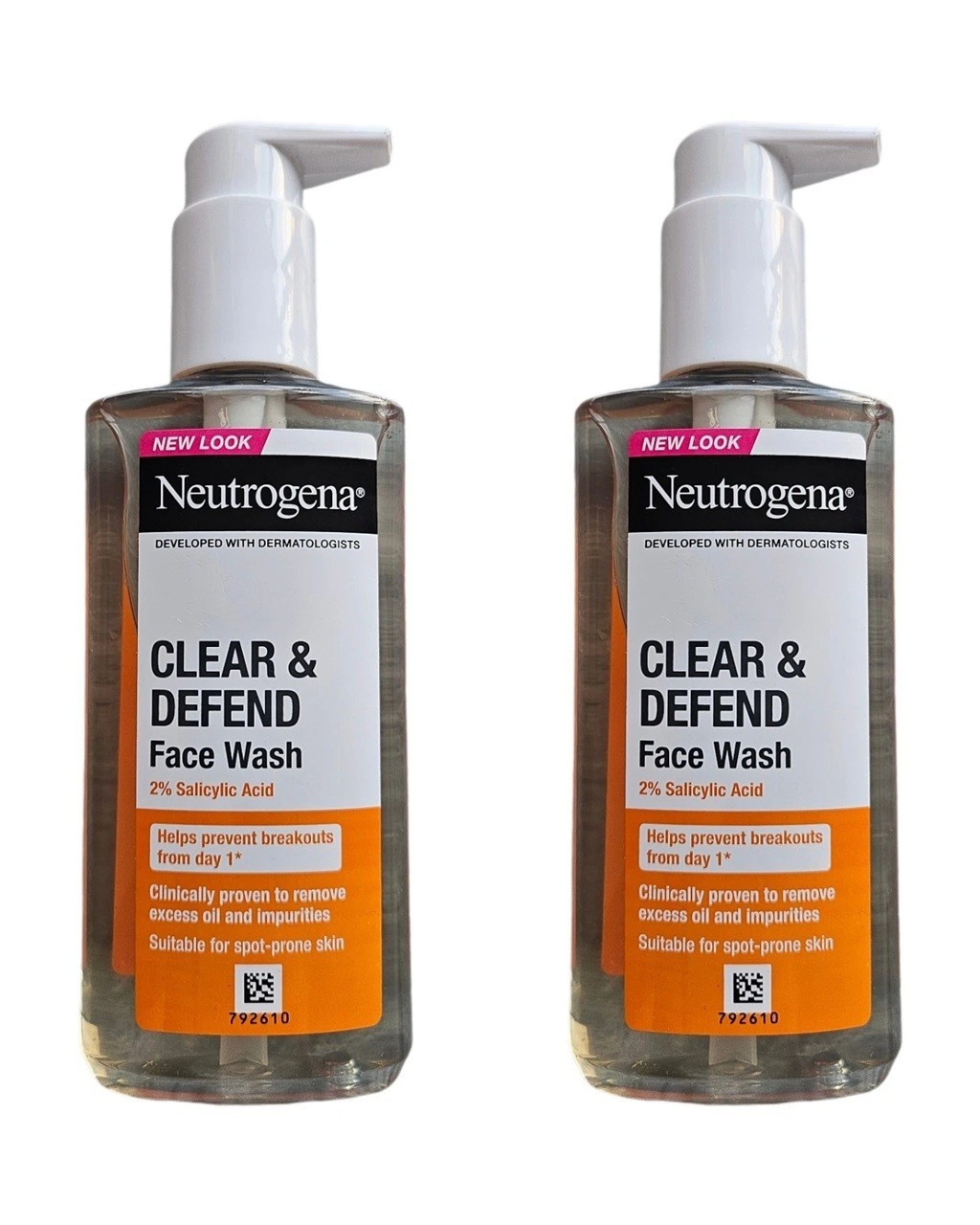 2x Neutrogena Clear and Defend Facial Wash With 2% Salicylic Acid Oil Free 200ml