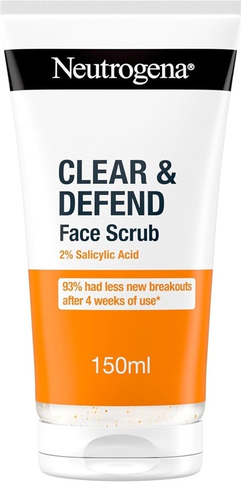 Neutrogena Clear & Defend Facial Scrub (1x 150ml), Oil-Free Face Scrub Suitable for Oily and Spot-Prone Skin, Facial Exfoliator with 2% Salicylic Acid Clinically Proven to Defend Against Breakouts