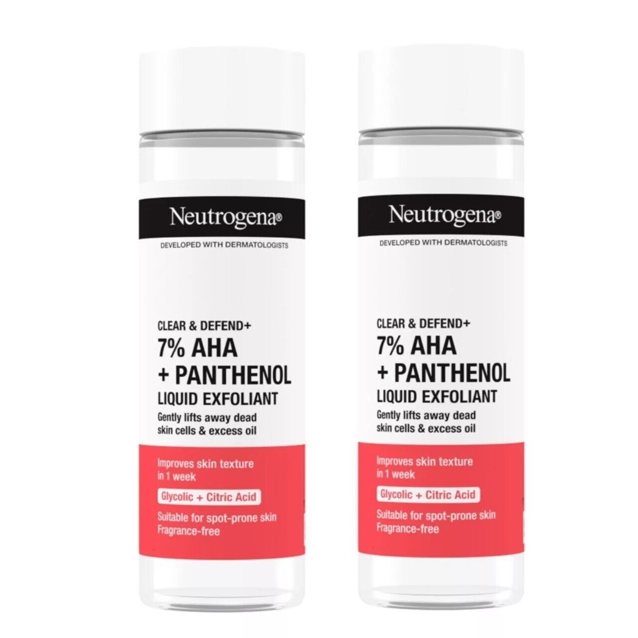 2 X Neutrogena Clear & Defend 7% AHA + Panthenol Liquid Exfoliant 125ml.