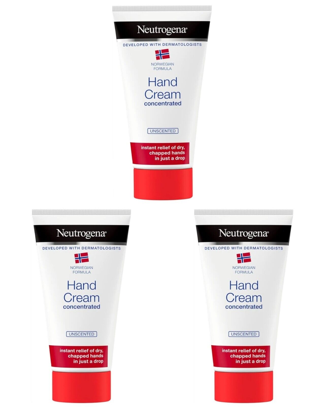 3x Neutrogena Concentrated Hand Cream Unscented 50ml - Norwegian Formula